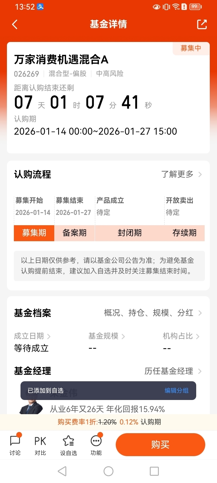 1.14-1.27认购!万家消费机遇混合A,逆周期投研护航,消费出海创新主线,看着不错啊,先看看有没有好机会。