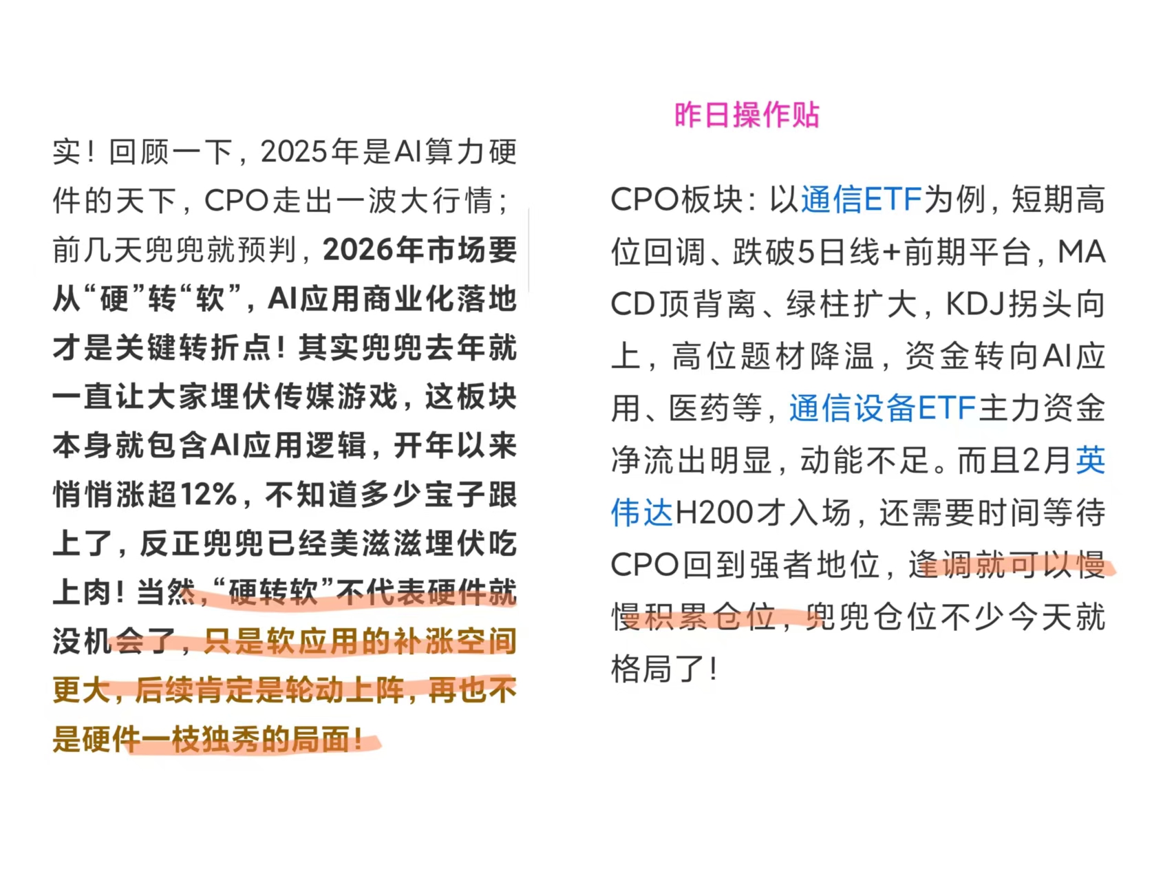 不过兜兜从前天就反复强调:分歧总会来,而分歧恰恰是新的黄金买点!昨天操作贴让大家低吸的板块,今天妥妥拿下涨幅,倒车接人的判断再次精准兑现!毕竟追高风险大,低吸才是王道,最近兜兜的节奏次次踩稳,听话的宝子账户今天依旧红彤彤!