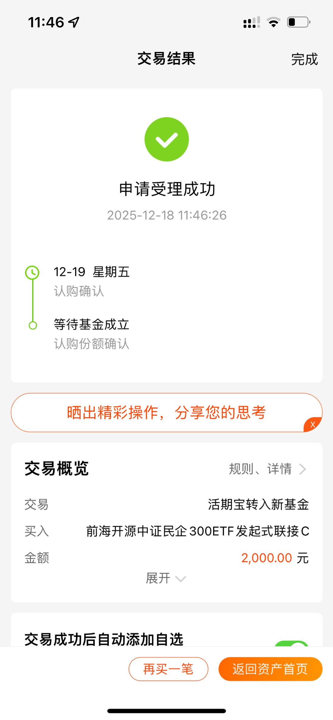 开售了,支持梁老师新基!有一起上车的吗?