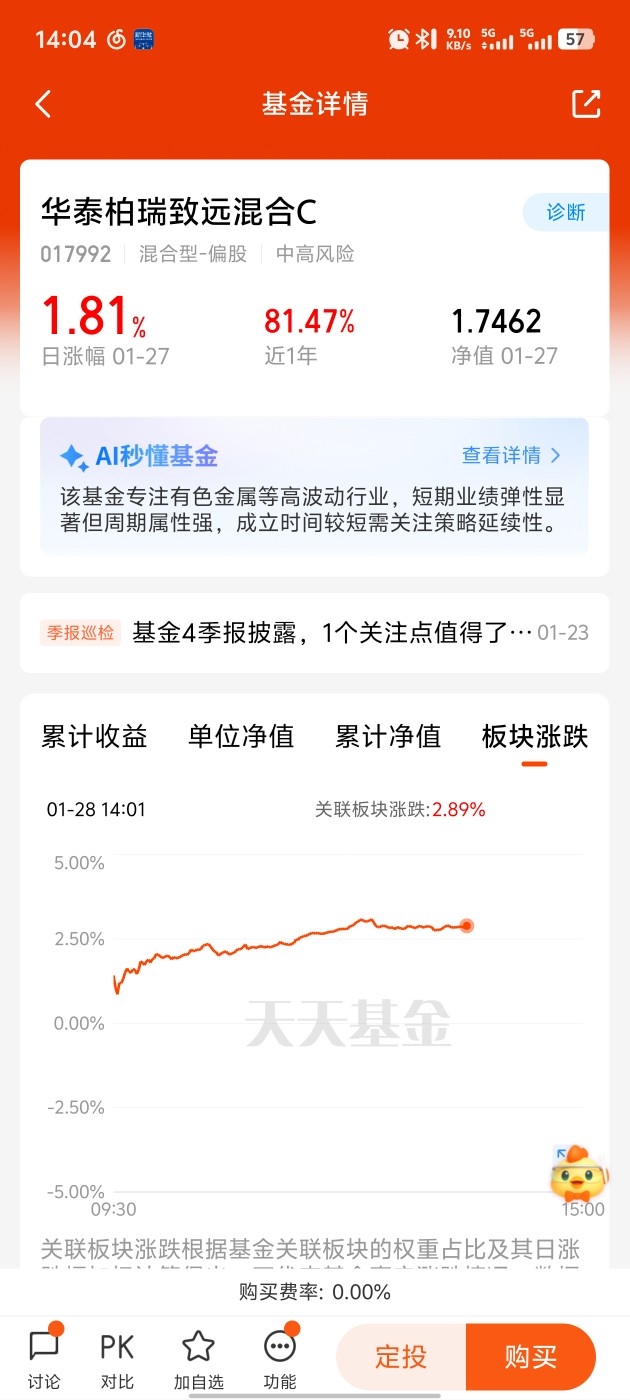 今天做A股的朋友估计都看到了,有色金属板块直接大拉升,单日涨了5.98%,整个周期股都被带动起来,贵金属方向更是多股涨停,资金疯狂涌入这个赛道。不管是短期的市场情绪,还是长期的新能源、科技带来的需求,都让有色板块的后劲很足。想跟上这波行情的可以瞧瞧华泰柏瑞,持仓正好是有色+科技双布局,近一年涨了81.47%,近6个月也有39.72%的涨幅,表现比同类基金都出彩,很适合布局。