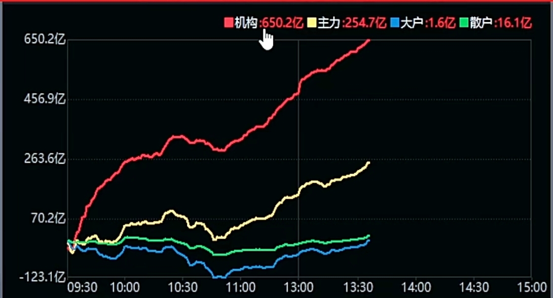 2月3日A股三大指数集体小幅反弹,截止我发文时,上证指数涨0.38%,深证成指涨0.93%,创业板指涨0.76%。总成交量16169亿,相比上一个交易日同期缩量400亿,估计全天量能在2.5万亿左右。三市有4430只个股上涨,有929家下跌。电池、光伏设备、国产航母、光纤概念、商业航天、CPO、半导体、可控核聚变等涨幅靠前,贵金属、银行、保险、黄金概念、油气开采、工业金属、旅游及酒店、农业种植等跌幅居前。今天社保重仓涨1.43%,养老金重仓涨1.61%,公募基金重仓涨0.74%,保险跌0.73%,证券跌0.15%,银行跌0.89%。今天大金属权重压指数,个股普遍反抽,社保、养老金和公募机构回补。主力资金监测图显示机构净流入约650亿,大主力净流入254亿,大户和散户都在净流入18亿。沪指探底回升,出长下影线。我认为目前是降速不调头,大趋势向上不变,永远不跟大趋势作对,今天继续加仓有色矿业等。