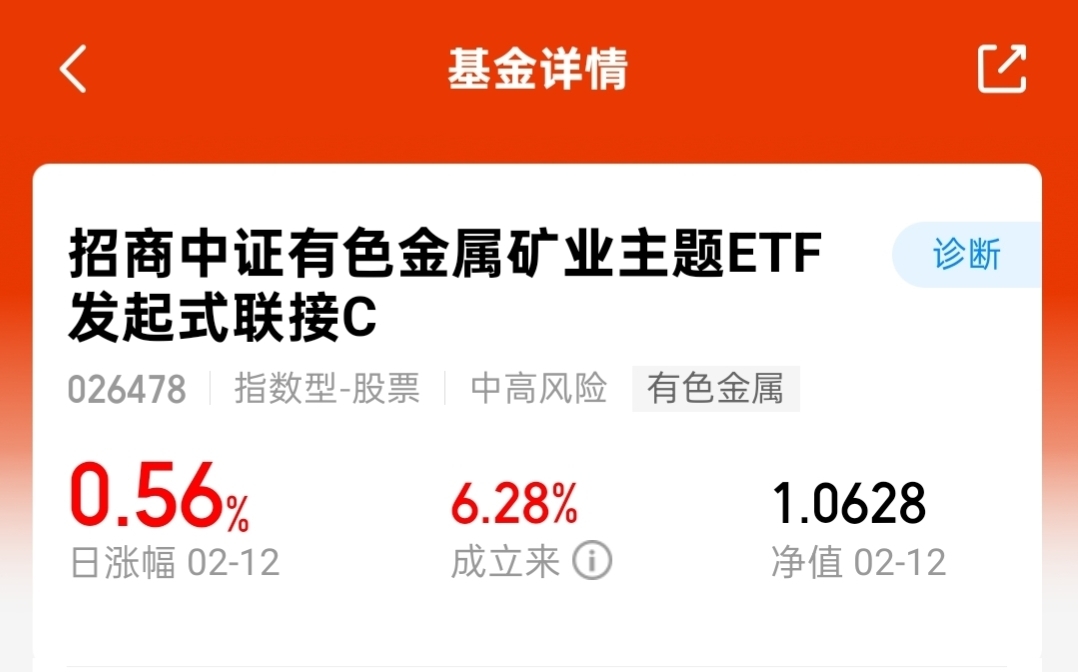 招商中证有色金属矿业主题ETF发起式联接C,周四涨0.56%,连涨2天,近1周涨