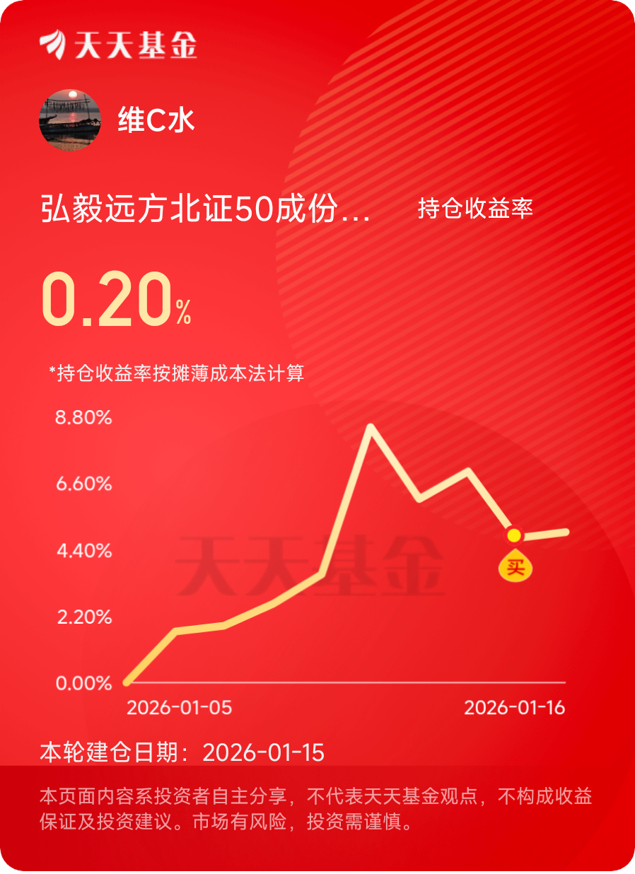 现在的北证50,既有硬科技的“内核”,又有高增长的“动力”,还有低估值的“安全垫”和政策的“强支撑”。对于想长期布局硬科技的投资者来说,不用纠结50万的开户门槛,借道$弘毅远方北证50成份指数I$ 就能低门槛参与,妥妥的长期配置好选择。@弘毅远方基金 #晒收益#