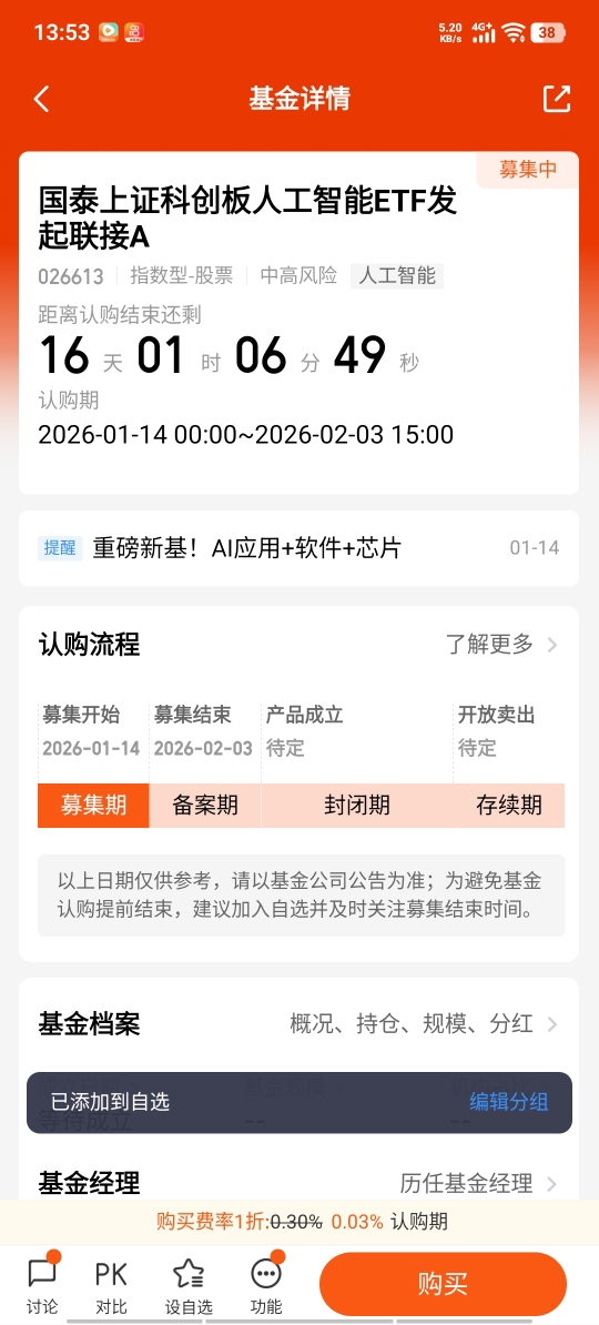 站在当前时点,AI产业已从“故事驱动”转向“业绩驱动”,科创板作为硬科技的核心阵地,正成为这波行情的主战场。对普通投资者而言,与其在个股中盲目试探,不如借助$国泰上证科创板人工智能ETF发起联接A$ $国泰上证科创板人工智能ETF发起联接C$ 这样的专业工具,一键把握全产业链机会,在控制风险的前提下,稳稳分享AI产业升级的红利。@国泰基金