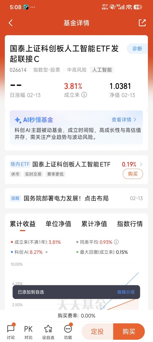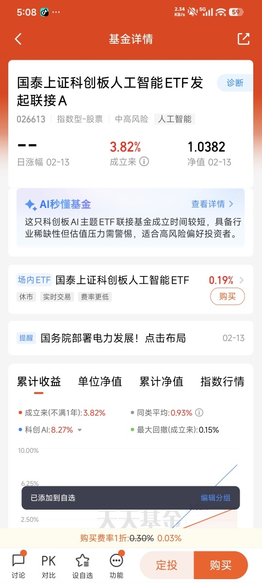 最后总结一下:马年AI绝对是A股的核心主线,我看好中长期行情,但短期震荡不可避免,保持谨慎不悲观。创业板AI胜在弹性,适合博弈波段;科创板AI胜在硬核稳健,适合长期配置,搭配国泰上证科创板人工智能ETF联接C布局,刚好平衡风险和收益。我们不用纠结选哪个,也不用怕震荡,跟着政策和产业趋势,分批布局、长期持有,就能稳稳抓住AI的投资机会,不追高、不恐慌,普通人也能在科技行情里赚到踏实钱。