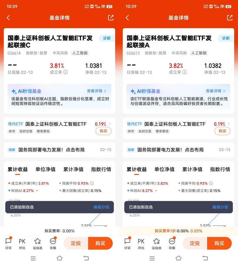 作为跟踪该指数的联接基金,国泰上证科创板人工智能ETF联接C为普通投资者打通了布局通道。科创板本身有较高的投资门槛,而ETF联接基金降低了参与难度,无需开立股票账户即可一键布局赛道核心资产。产品费率结构友好,持有灵活性高,适合定投与长期配置,能够帮助投资者避开个股选择风险,分享AI产业整体成长收益。对于希望把握科技成长机遇、又缺乏专业选股能力的投资者而言,这一产品是适配性极强的配置选择。