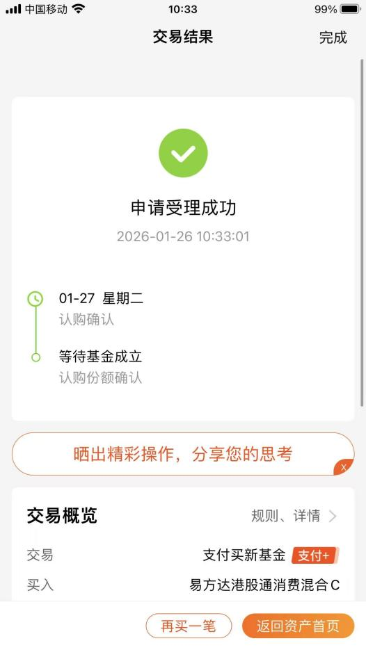 这基还在募集中,不想追高位科技的,寻求稳健确定性收益的,可以关注下$易方达港股通消费混合C(OTCFUND|026649)$。或者像我一样,逢低定投。