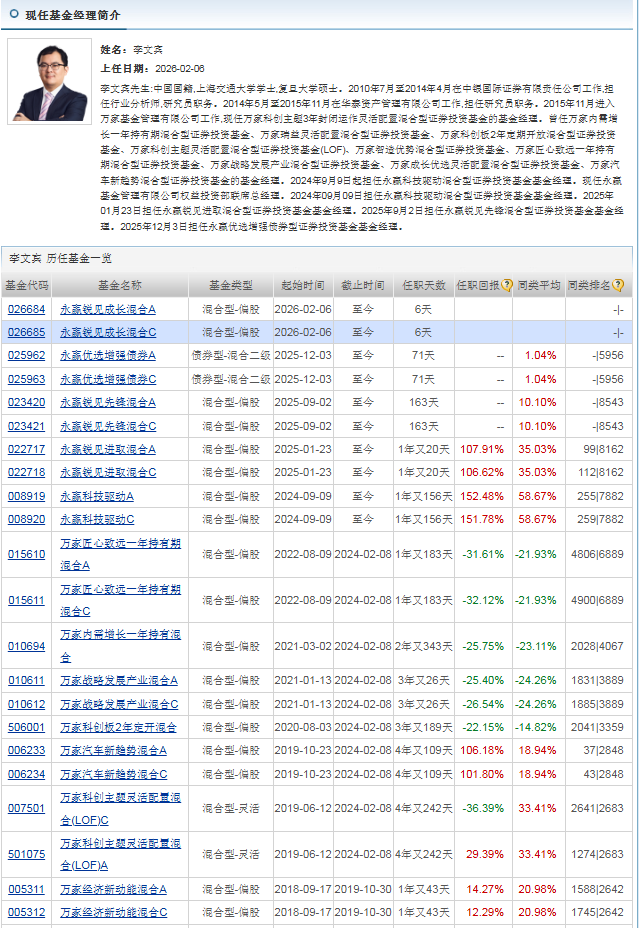 本基金拟任基金经理为李文宾基金经理,拥有多年证券从业经验(证券从业日期2010年7月21日),具备扎实的投研功底和丰富的实战经验。其目前管理的多只产品表现优异,例如永赢科技驱动A自2024年9月任职以来,任期回报达169.30%,远超同类平均的58.93%,行业排名191/7952;永赢锐见进取混合A自2025年1月任职以来,任期回报121.22%,大幅跑赢同类平均的35.20%,行业排名59/8194,过往业绩充分体现了其优秀的选股和资产配置能力。