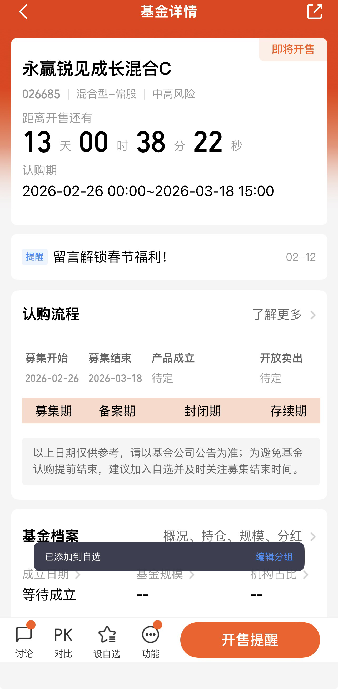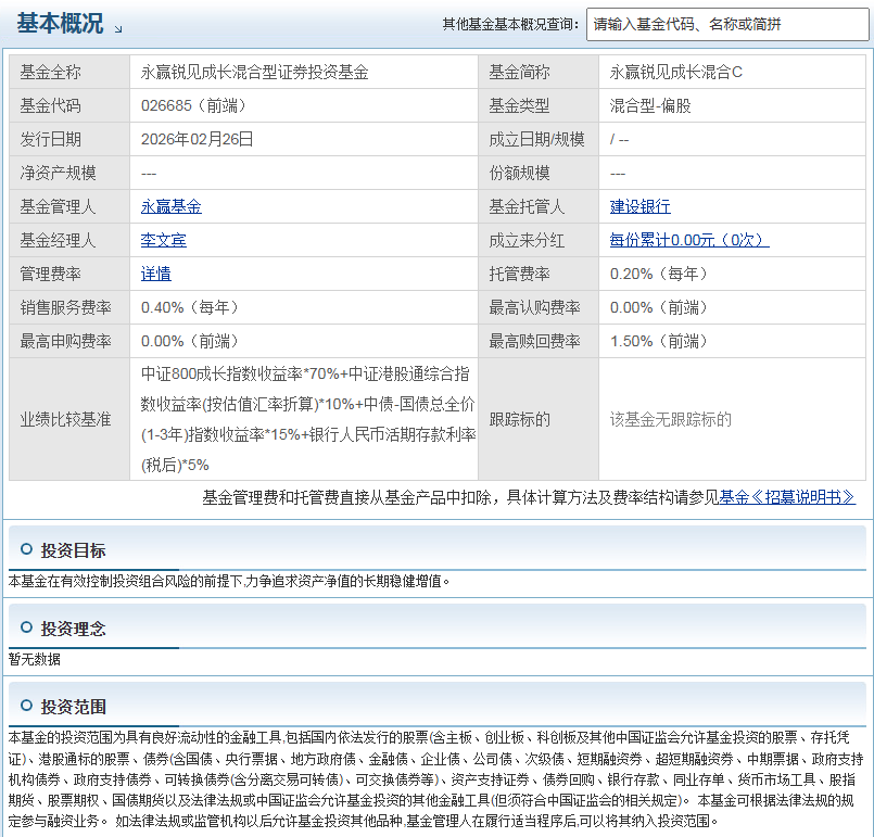 本基金发售期为2026年2月26日至3月18日,属于新发基金,可在3-6个月的建仓期内,根据市场波动逐步布局优质标的,有效规避短期市场波动带来的择时风险。相较于老基金,新发基金无历史持仓包袱,能更灵活地契合当前市场节奏,把握阶段性投资机会。