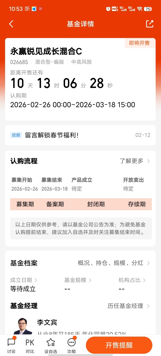 对于$永赢锐见成长混合C$ 还是有一些期待的,主要是它的基金经理李文宾,从业8年又184天,年化回报20.58%。这样的年化回报率我认为很吸引人。李文宾经理管理的$永赢锐见进取混合A$ 近一年收益率达111.89%,今年以来也上涨了12.94%。所以对于该经理的新产品是会有一些期待的。@永赢基金