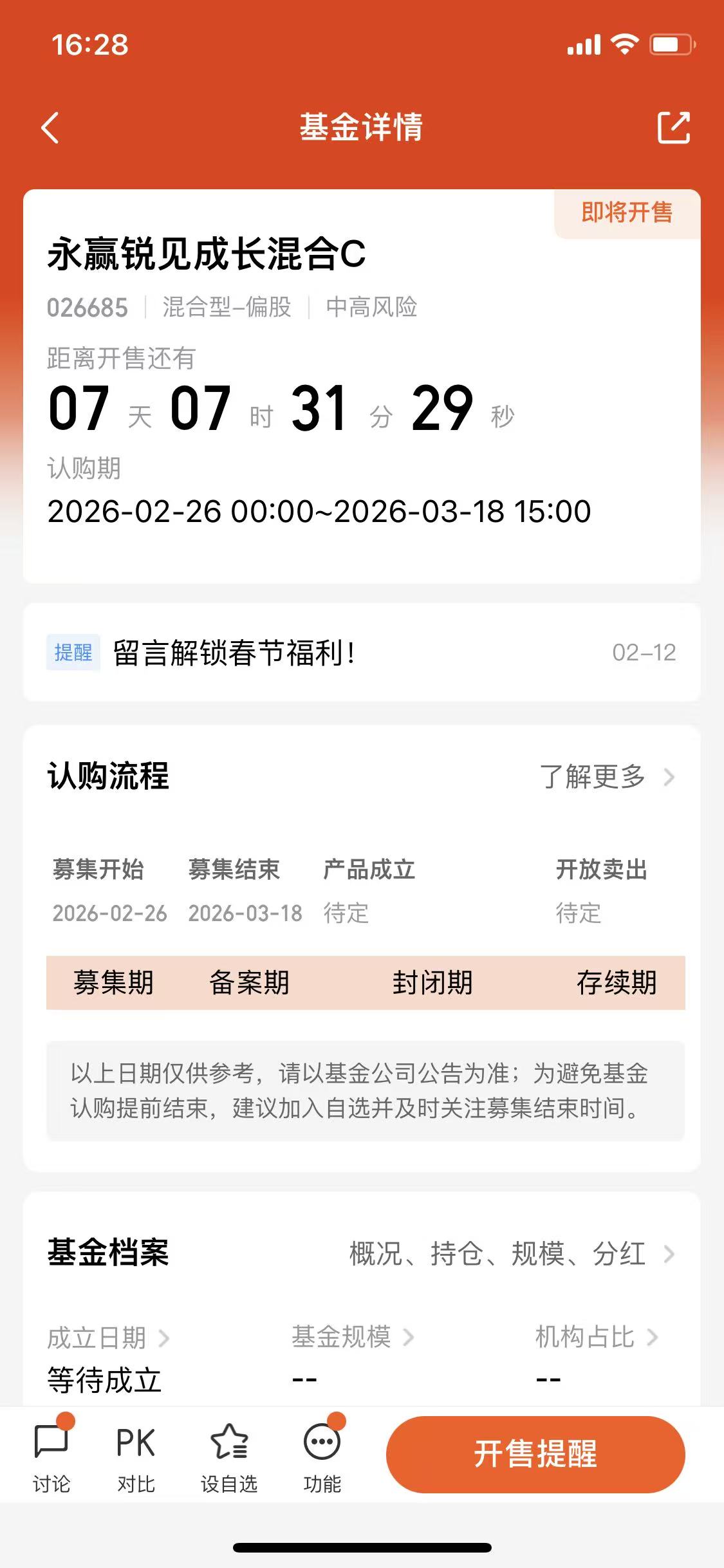 春节这几天基本没闲着,走亲戚、会老友,把假期的行程排得满满当当,一边沉浸在过年的热闹烟火气里,一边也趁着假期的空闲,沉下心把接下来的投资思路好好梳理了一番。和小时候只惦记着压岁钱、摔炮与漫画书的春节截然不同,如今的春节多了几分责任与思考,我们大多数人投资理财,也是为了给家人更安稳的生活,为自己的未来添一份踏实的保障。恰好白鹤君近期发现永赢锐见成长混合C(026685)这只新基金潜力蛮大的,我打算在假期后布局一些。