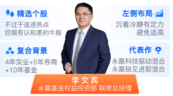 作为业内稀缺的复合型基金经理,李文宾拥有“4年实业+5年券商+10年公募基金”的独特背景,上海交通大学学士、复旦大学硕士的学历加持,让他既懂产业底层逻辑,又精通市场投资规律。这种全方位的视角,让他能够精准洞悉产业趋势,擅长左侧捕捉市场主线,在纷繁复杂的市场中筛选出真正具备长期成长潜力的优质个股。其过往业绩更是实力的最好佐证:管理永赢科技驱动基金;永赢锐见进取基金,超额收益显著,充分展现了卓越的投资能力和市场洞察力。