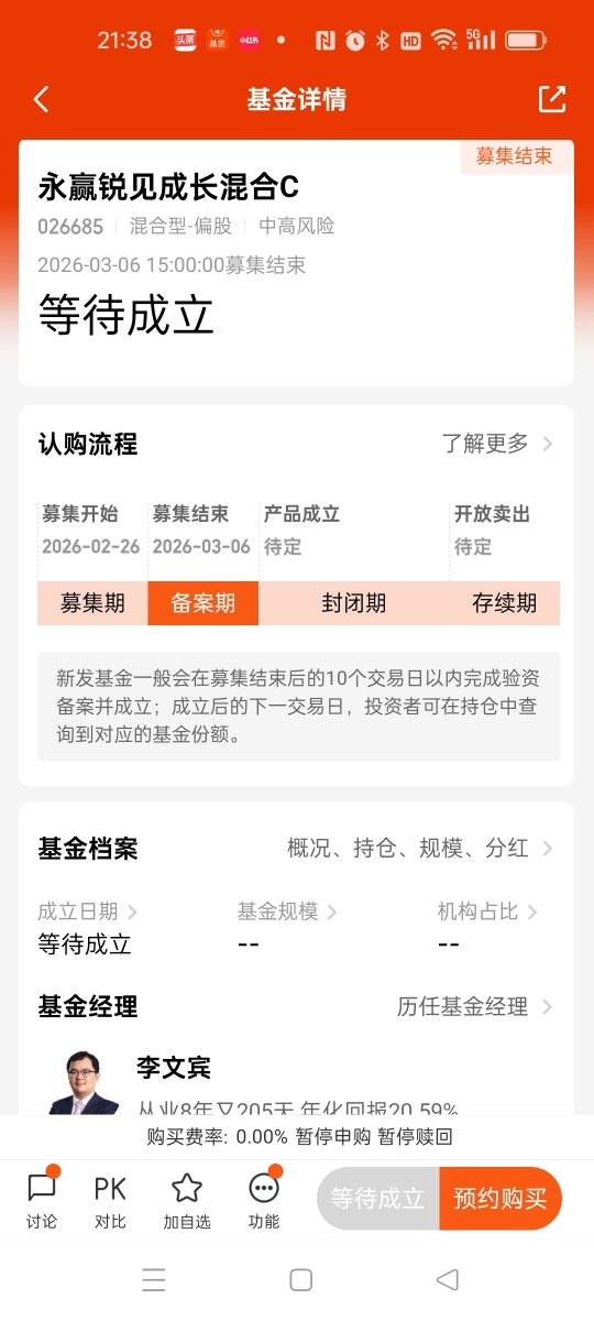 本基金是个新发行的新基,基金经理是永赢基金的老将李文宾。