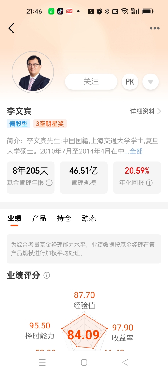 李文宾经理是拥有4年实业+5年券商+10年基金的管理经验,不管是在投资经理和投资的经验上面,在国内的公募基金圈里,都算是资深人士了。