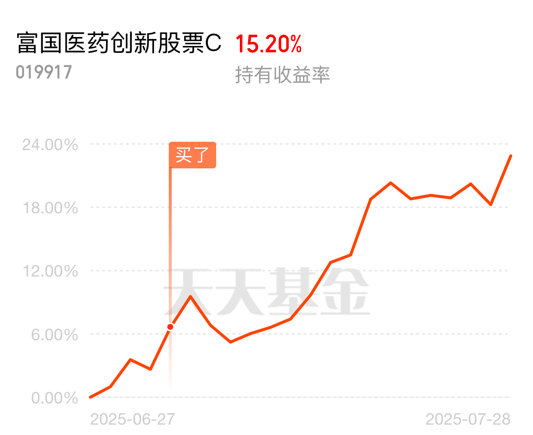 医药行业政策环境变好,医保优化,发展质量提高。创新药继续涨,富国医药创新股票C涨