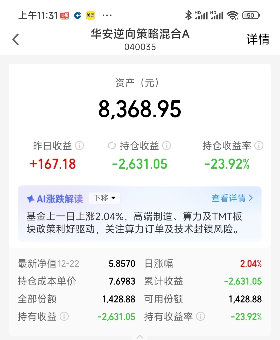 $华安逆向策略混合A[040035]$ 四年多了,就这个揍性