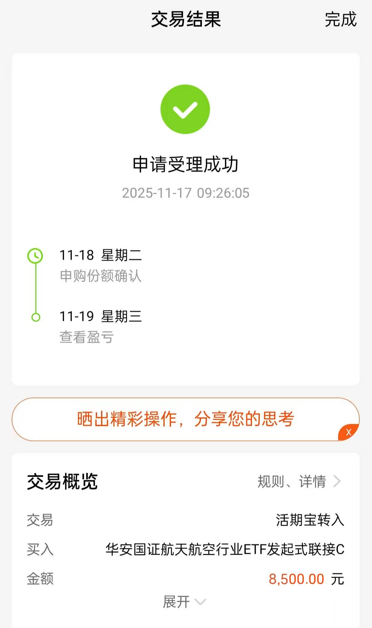 航空航天早盘大幅高开,$华安国证航天航空行业ETF发起式联接C$(025733)净值估算一度涨超2%,这波行情真的抓住了!它跟踪的指数军工纯度很高,盯航空航天关键领域#锂电池行业拐点确立!锂电大周期来了?#