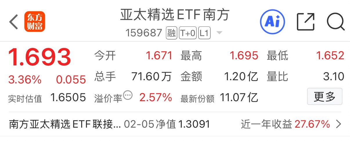 159687今天涨3.05%,持仓不光有韩股存储,还有日股测试