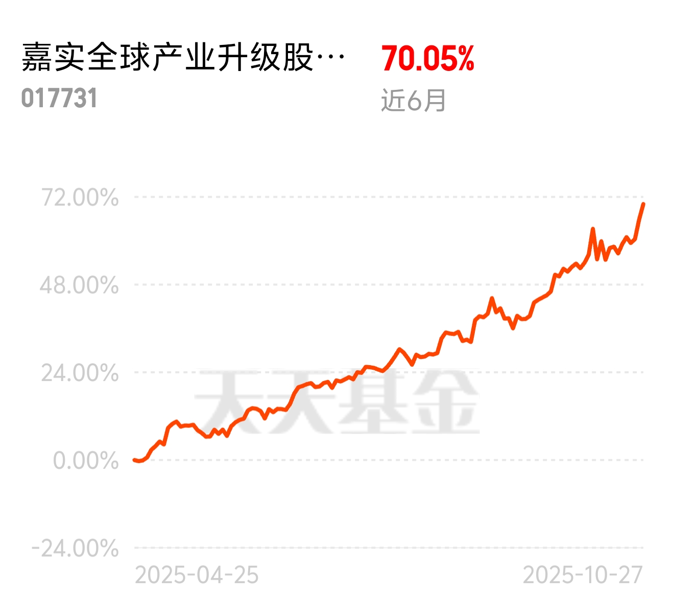 今天最火的还是英伟达带起来的科技风。10月29日,英伟达在美国首都举办GTC大会,黄仁勋宣布,目前截至2026财年底的Blackwell、Rubin芯片订单已经达到5000亿美元!英伟达股价再创历史新高,为全球市值最高上市公司。$嘉实全球产业升级股票发起式(QDII)C$ 配置美股和港股科技方向,都是拥有核心技术壁垒的公司,英伟达也是其重仓个股,整体表现不错。