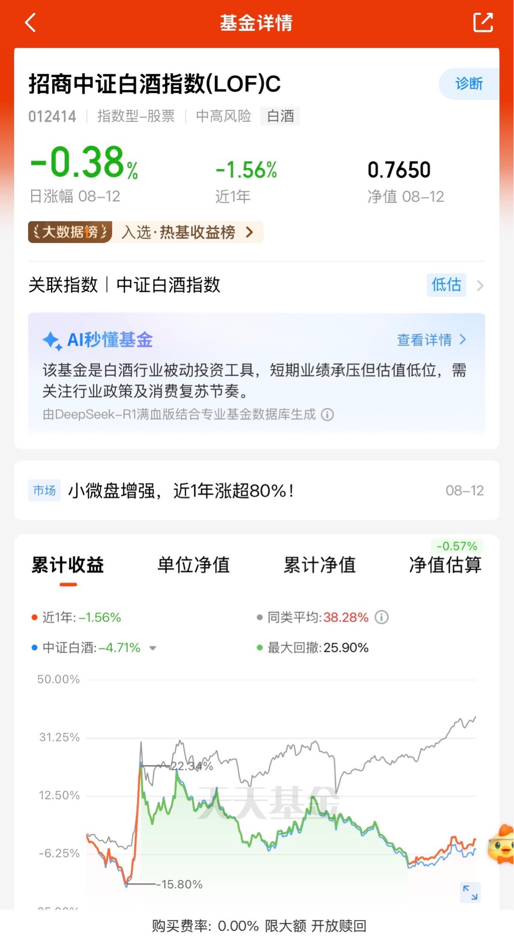 这基专治追高焦虑!招商中证白酒指数C五个月后估值合理回调,尾盘依然泛绿,连续四天