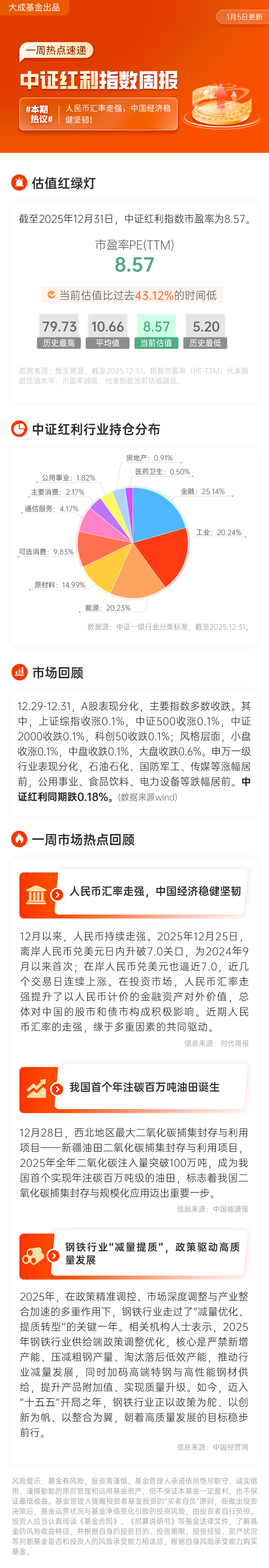 中证红利指数行业周报(12.29-12.31)