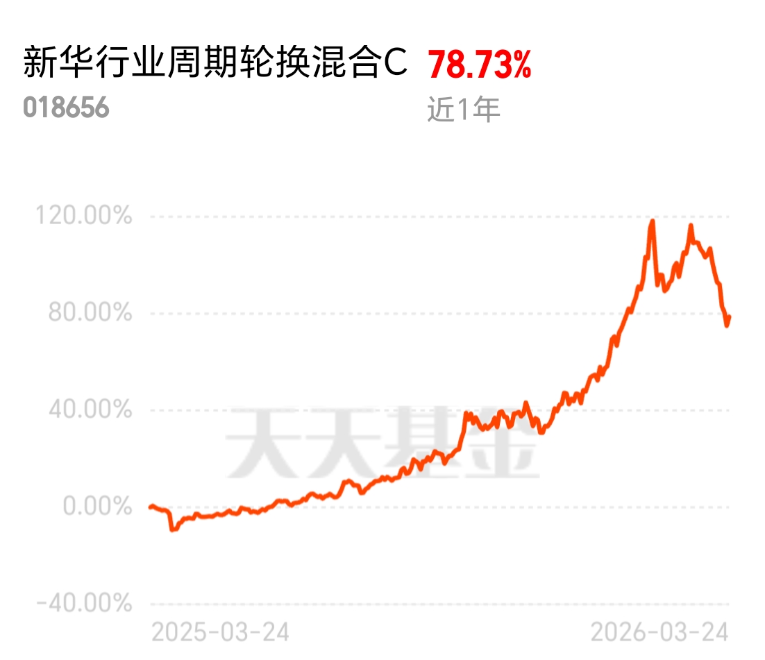 给爸妈解释半天什么是基金,直接给他们看新华行业周期轮换C(018656)近一年涨幅78.73%。二老看懂了,我也顺势多加了点。