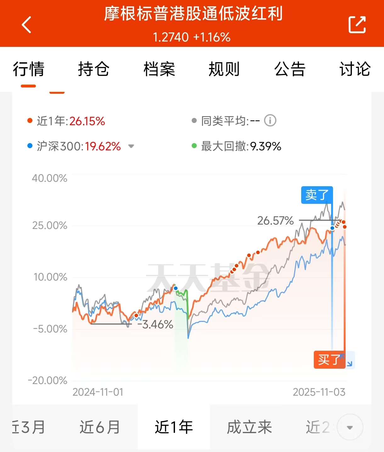 黄金积存金起购金额上调,最低投资额年内累计涨幅有的超50%。与其追高黄金,不如关注红利资产,复盘历年四季度,红利资产胜率超高!原因有三:一是机构年底调仓,求稳转向高股息;二是上市公司三季报分红密集发布;三是政策驱动(如国九条强化分红)。今年更特殊,低利率深化(国债利率1.6%),红利股息率4-6%,利差超200BP,资产荒下红利成香饽饽。$摩根标普港股通低波红利指A$(005051)就是标杆,近一月涨4.13%,超越81%同类,近三年年化收益22.13%,碾压多数A股红利基金(如中证红利指数年内下跌)。港股红利为啥比A股牛?估值洼地+股息率双重优势:恒生指数PE仅10倍,处于近十年5%分位,AH溢价指数129点,H股较A股折价超30%,同一公司H股股息率税后仍高2-3个百分点。这基金重仓的港股房地产(如太古地产、恒隆地产)已进入景气早周期,明年修复空间大。加上美联储降息预期,港股流动性改善,现在布局就是卡位四季度行情。历史不会骗人,红利资产在震荡市中就是“压舱石”!#10月投资总结:我的收益如何了?#