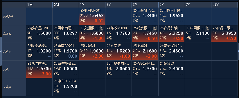 今日央妈继续净投放,资金面维持均衡叠加昨晚美股大幅向下,市场对于美联储降息预期降温,权益市场受外围因素影响集体低开。债市呈现震荡偏强的走势,银行间主要利率债收益率多数下行,信用债品种中,二永债收益率下行较多,期限上,中长端收益率下行较多。