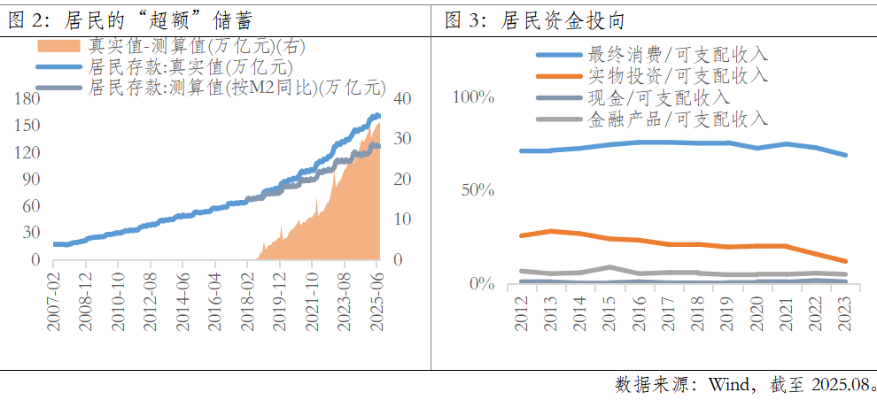 本轮居民积累了大量的预防性存款,所以向后看,“储蓄搬家”依然大可期待。自2018年以来,居民的储蓄意愿开始明显上行,核心在于,对未来就业、收入预期的下滑,让居民倾向于多储蓄、少消费。根据央行调查问卷,城镇居民“倾向更多储蓄”的占比从2018年初的41%上升至2025年中的64%。若是按M2同比增速来测算,则约有34万亿元居民存款属于超额储蓄。考虑到居民的资金流向中,金融产品占6%左右,则按中性假设,这部分可能带来的增量资金大约在2万亿元左右。