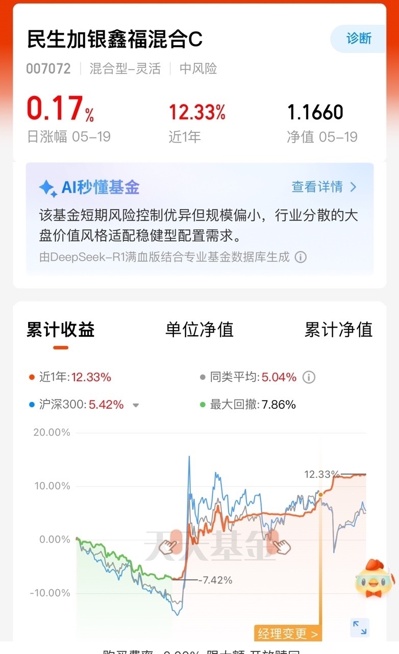 债市最近表现不错,民生鑫福相比长利率债大起大落的体验好很多,适合大额资金长拿$民