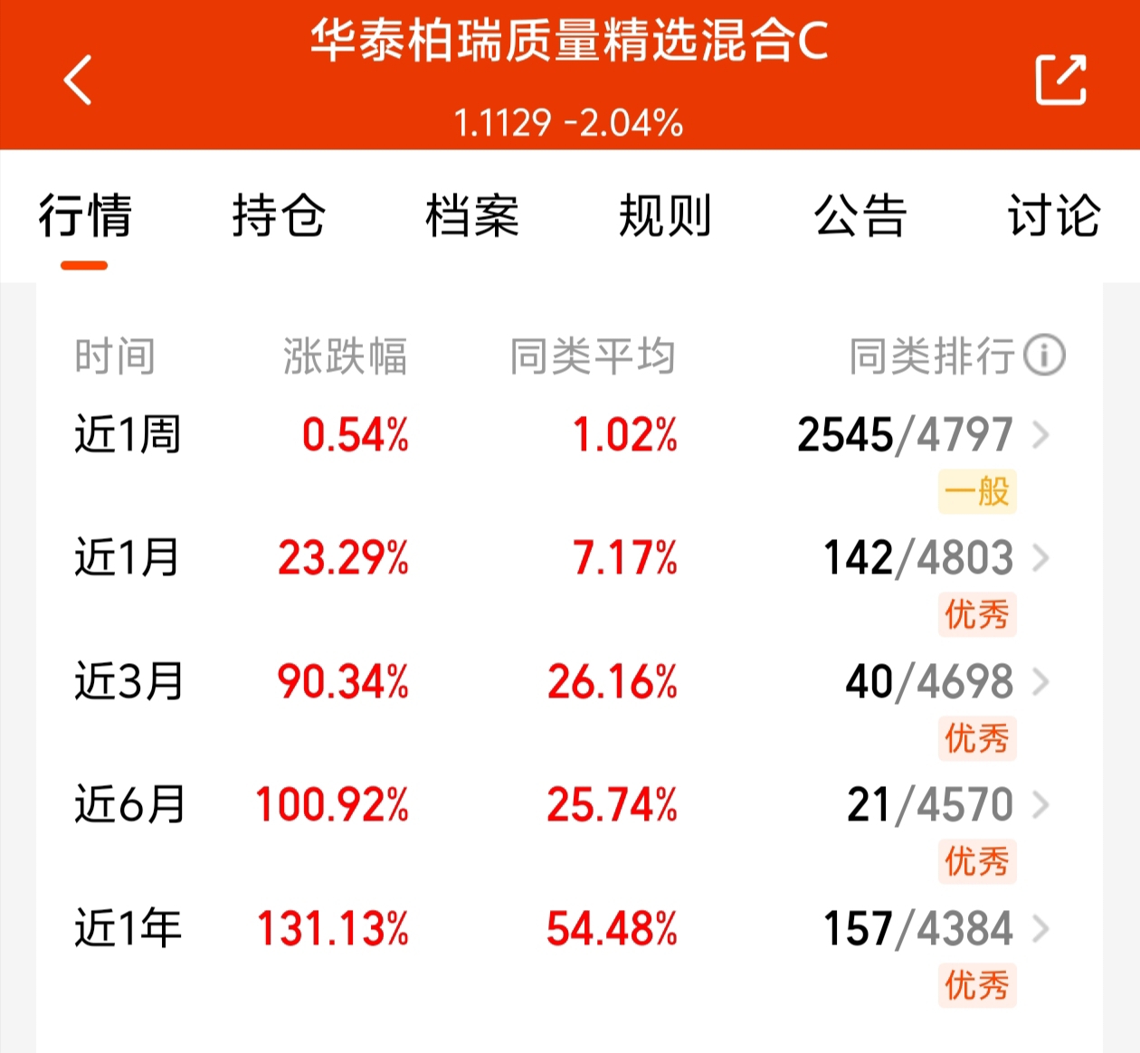 市场波动加大,更需要优秀的管理人来驾驭。$华泰柏瑞质量精选混合C$近三个月90.