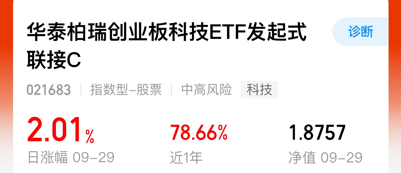 看到华泰创业板科技今天涨2.01%,三个月收益54.33%,一年更是78.66%