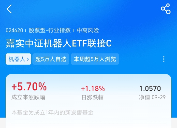 近期科技板块分化,前期热门赛道有所回踩,而机器人板块却开始震荡走强,今年来涨幅惊人,政策、技术、需求三重利好加持,资金开始持续流入,政策上,具身智能写进政府工作报告,多地砸钱支持产业发展。技术上,AI大模型与机器人深度融合,量产订单开始落地。需求端,老龄化和制造业升级催生巨大市场,规模未来有望超汽车行业。而$嘉实中证机器人ETF发起联接C$ 直接跟踪中证机器人指数,一键打包全产业链龙头,加上C类免申购费,持有够久赎回也免费,性价比也不错,而且我认为,随着市场的上行,接下来它还会有不错的表现!