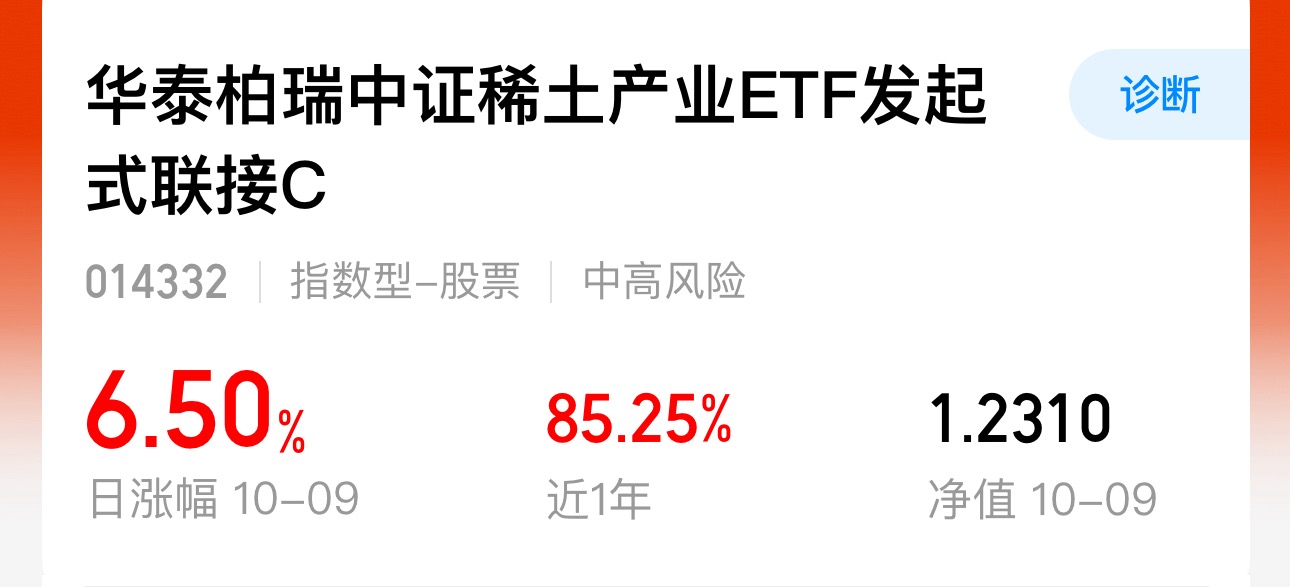 华泰中证稀土今天表现强势,涨6.5%,近一年收益85.25%!国家持续推进稀土产业发展,龙头企业受益最直接。