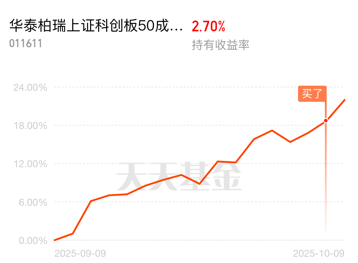 刚算了下账,$华泰柏瑞上证科创板50成份ETF联接C$是我近期最赚的,三个月51