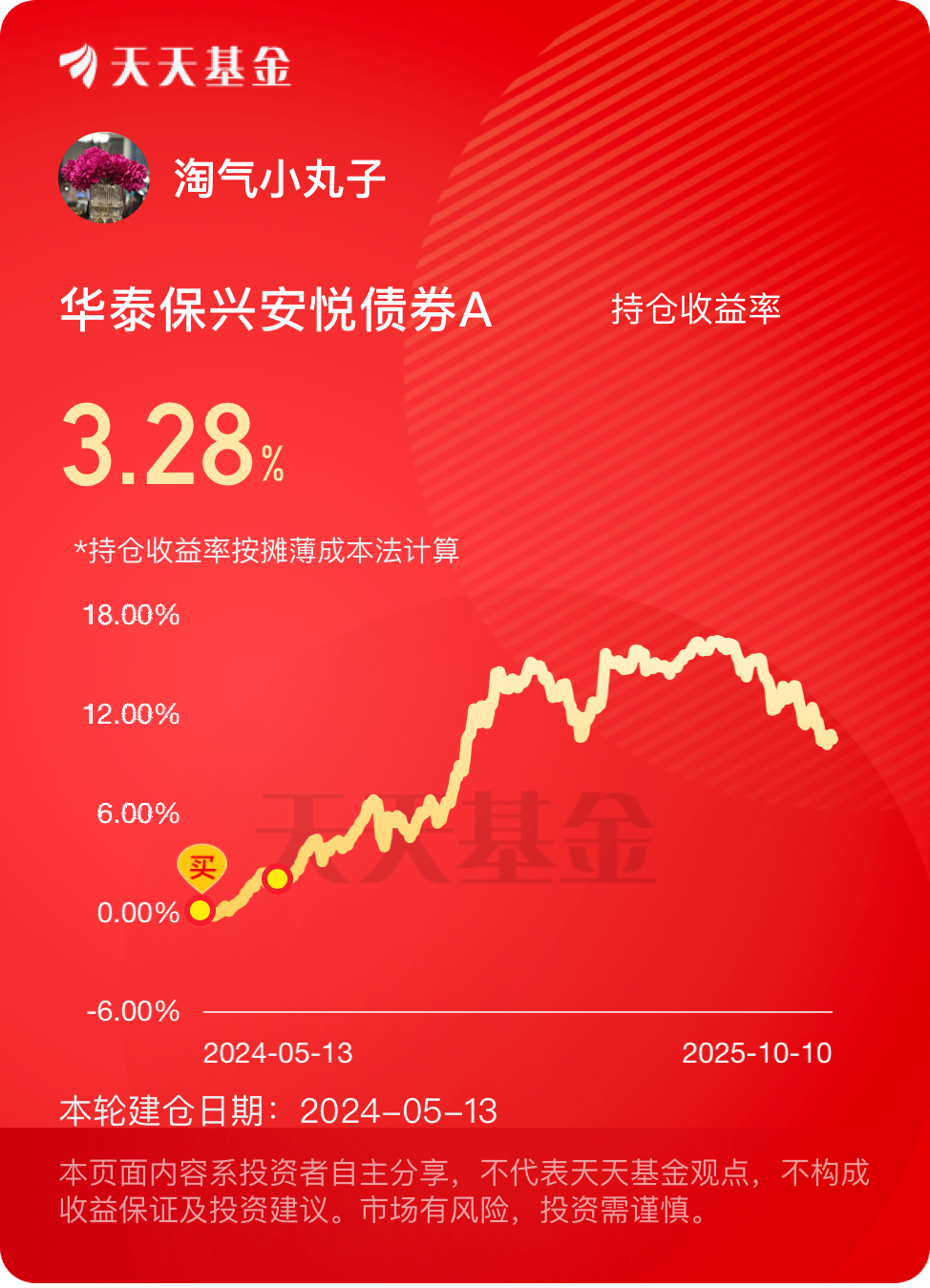 #上证指数# 周末债券市场起来了,今天预计收蛋70,期待周一累计更新了$华泰保兴安悦债券A$ #晒收益#