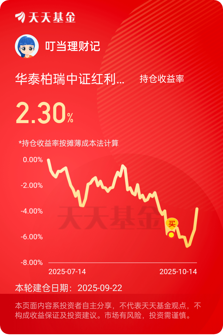 还行还行,小小一盈!华泰中证红利今天继续上涨1.70%,连续四天收红。看来在波动行情中,防守型资产确实能带来不错的回报。#晒收益#