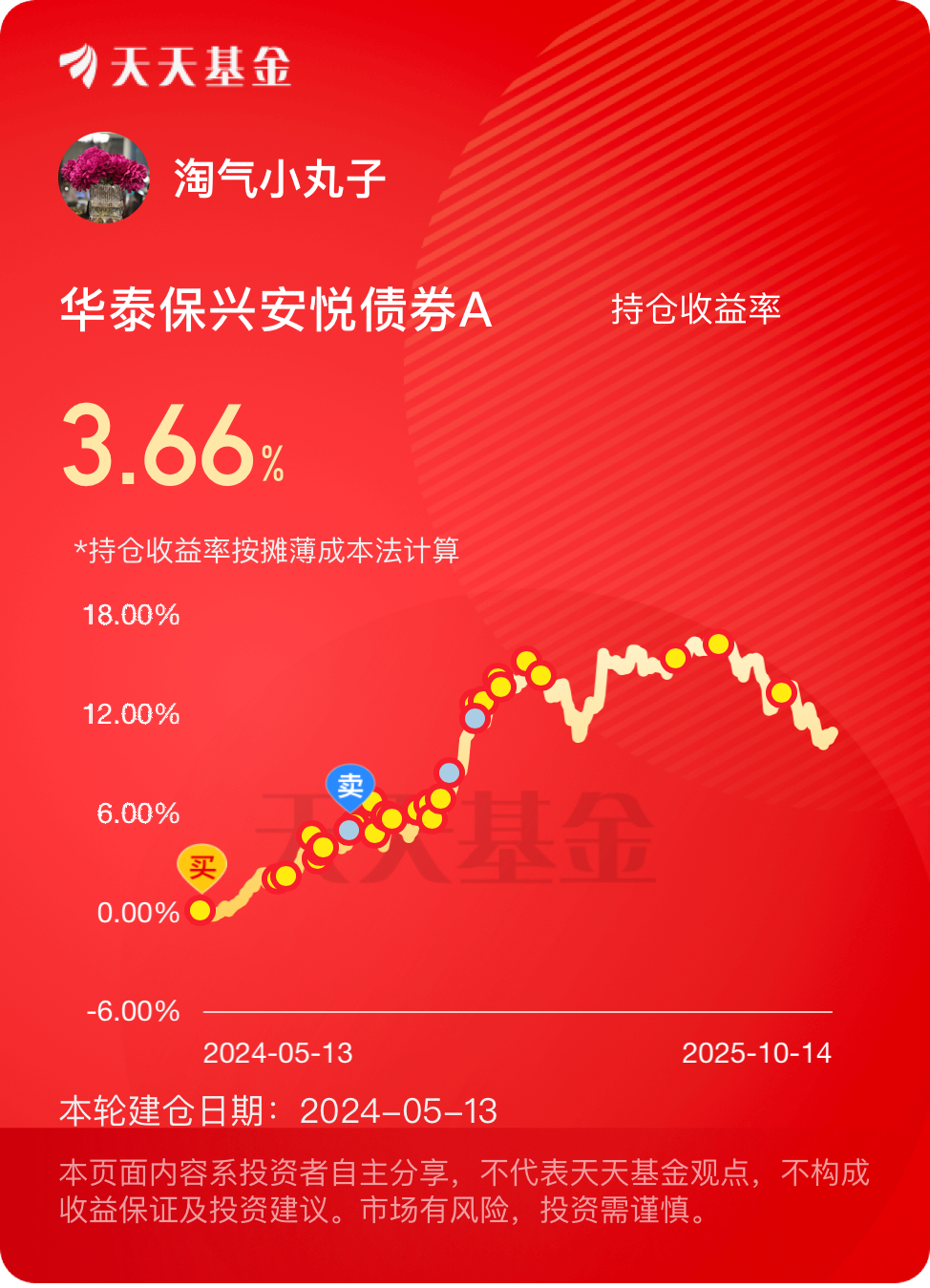 #上证指数# 还是要稳扎稳打,这基长期业绩还是蛮稳的,拿着更安心 $华泰保兴安悦债券A$ #晒收益#
