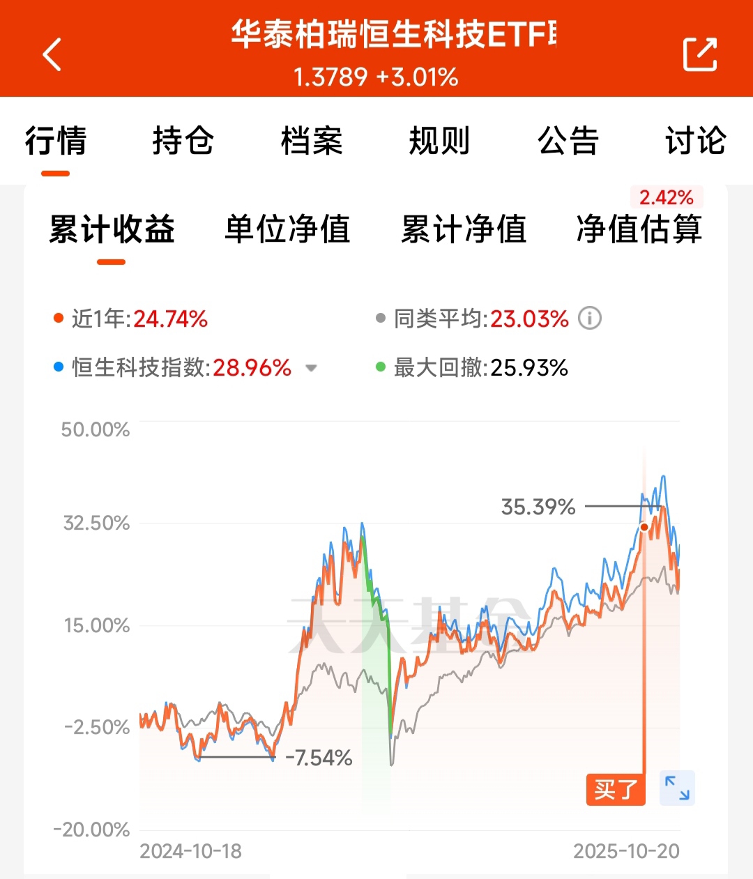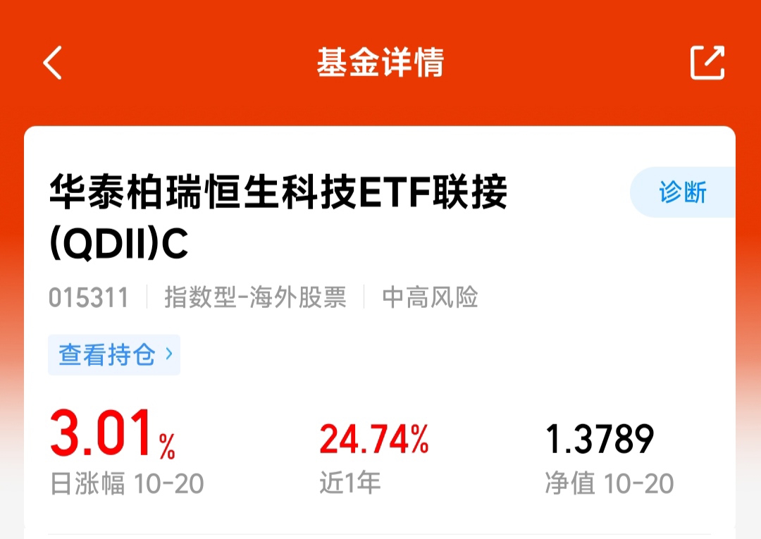 $华泰柏瑞恒生科技ETF联接(QDII)C$表现亮眼,昨天收涨3.01%,今天估