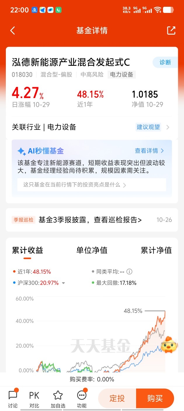 相对于中长期投资而言,现在$泓德新能源产业混合发起式C$机会的成分要高于风险,可