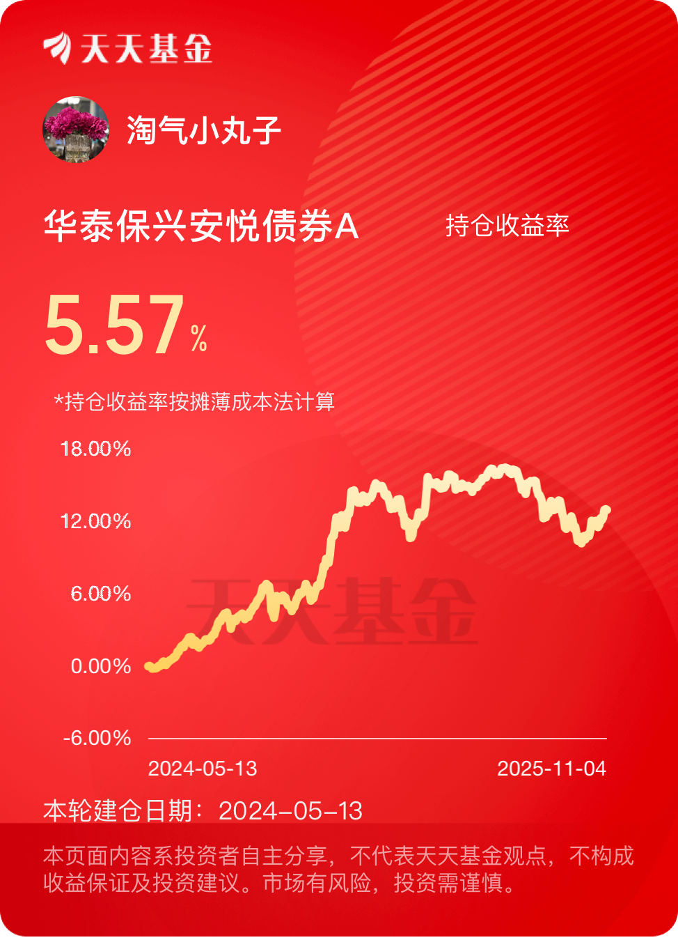 债市短期回调,长期上涨逻辑不变,安悦回撤修复还是很快的,反正我是拿稳了$华泰保兴