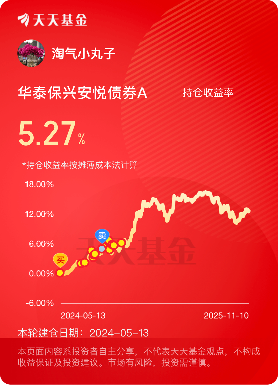 #上证指数# 债市热情不减,继续深蹲纯债~华泰保兴安悦涨起来还是很牛的,不投股市走势很稳$华泰保兴安悦债券A$ #晒收益#
