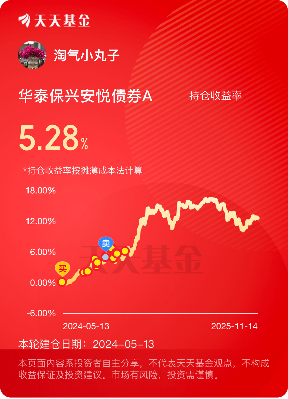 最近这样的市场一定不要盲目跟风,还是要控制好仓位,$华泰保兴安悦债券A$w最近也