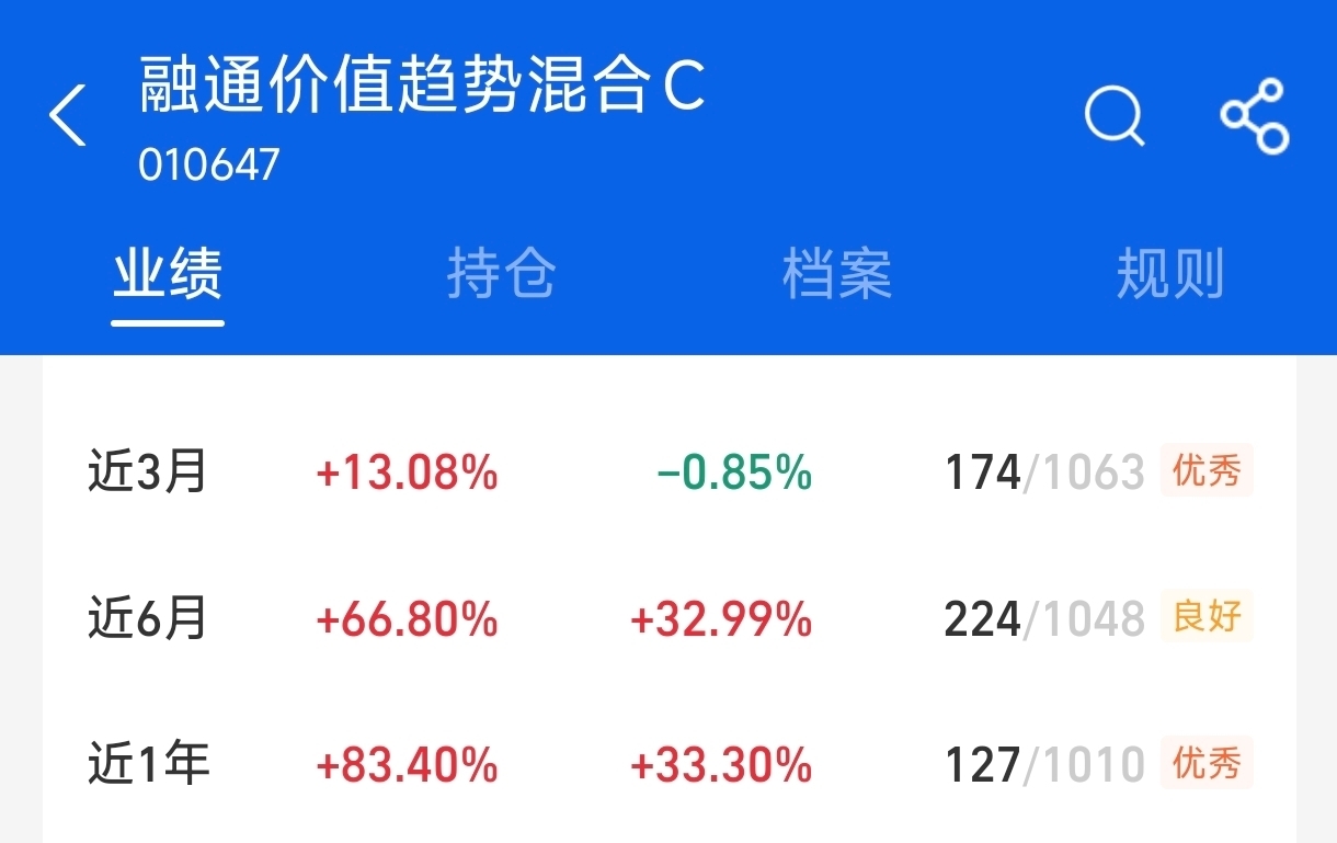CPO延续昨天的强势表现,继续拉升,我最近关注的$融通价值趋势混合C$ 表现出色,该基金重点配置了通信、电子、电子设备等科技创新领域,契合了当下的产业升级趋势,同时搭配新能源、互联网等板块,没有单押一个赛道,总体比较均衡,在博取超额收益的同时,降低了风险系数,业绩也很牛的,昨天就大涨了4.28%,历史业绩更是不俗,近3个月上涨12.08%,近6个月上涨66.80%,近1年涨幅更是高达83.40%,远超同类基金表现呢,各阶段业绩均处于同类基金的前列。当前权益方向已调整有一段时间了,这周开启了反弹,随着12月降息概率的加大,后续行情还是看好的,今天融通价值就加上一笔5000元,继续等反弹吃肉。