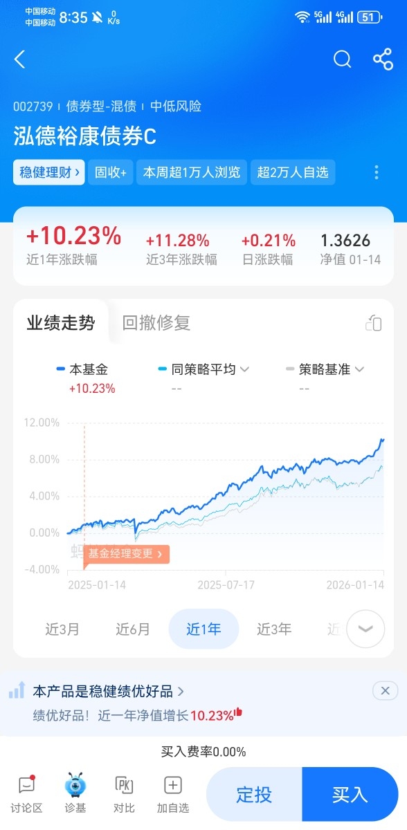 泓德裕康债券C再迎红盘!近一年收益10.23%,今日+0.21%,聚焦中高等级信