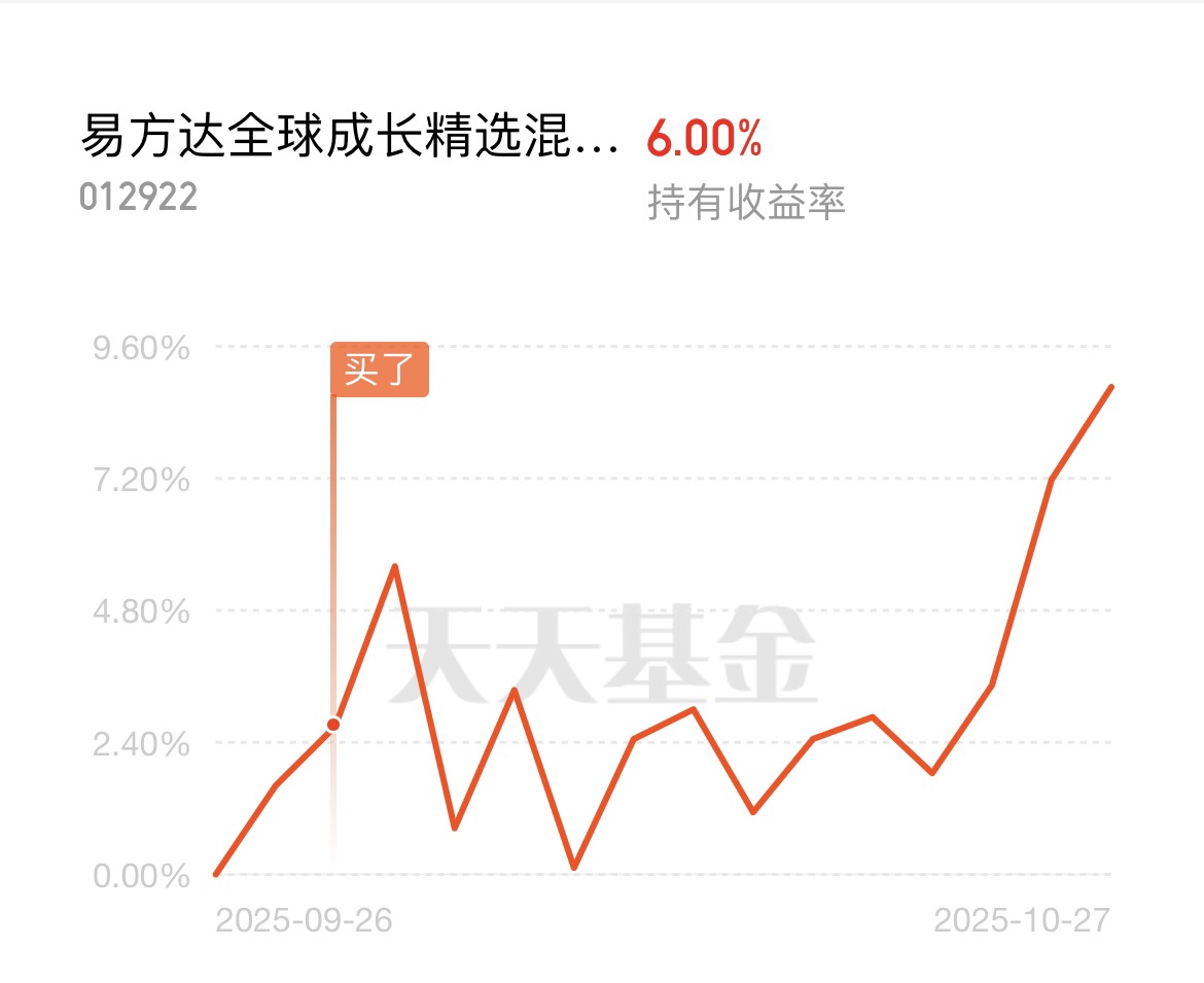 现在降息周期开启,全球科技类资产其实挺有机会的。美股的机器人、AI有先发优势,A股的算力资产也很关键,港股互联网巨头还能受益AI应用落地。易方达全球成长精选混合C最近表现不错,近一周涨了6.25% ,比同类平均好不少。要是想跟上短期科技行情,又不想单押一个市场,这款全球配置的产品还是不错的。