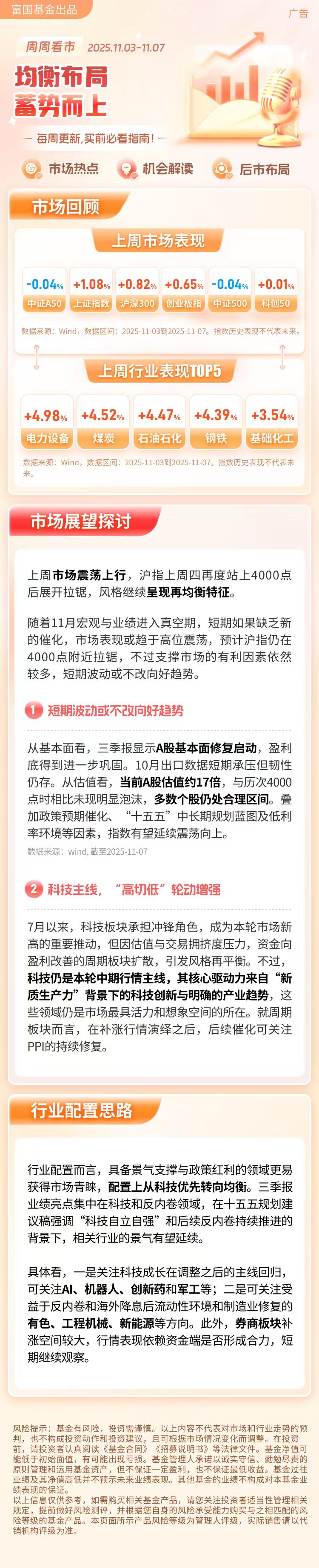 随着11月宏观与业绩进入真空期,短期如果缺乏新的催化,市场表现或趋于高位震荡,预计沪指仍在4000点附近拉锯,不过支撑市场的有利因素依然较多,短期波动或不改向好趋势。