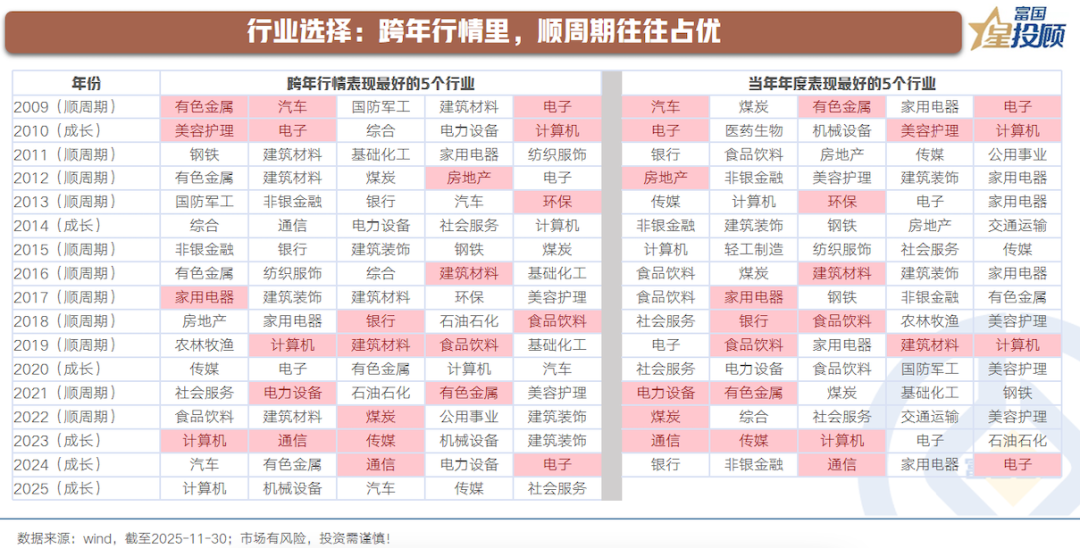 行业选择:跨年行情里,顺周期往往占优
