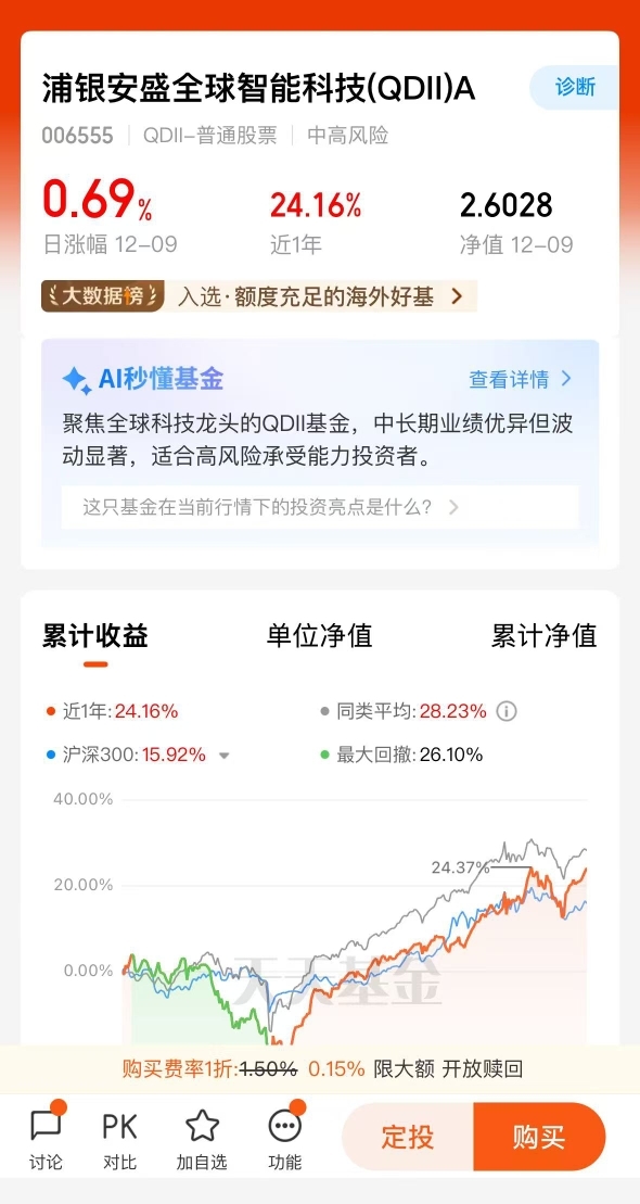 浦银安盛全球智能科技完全不限购,额度管够,近6个月上涨24.84%,已经6连涨了!操作灵活,轻松跟上,美股基就选它$浦银安盛全球智能科技(QDII)A$