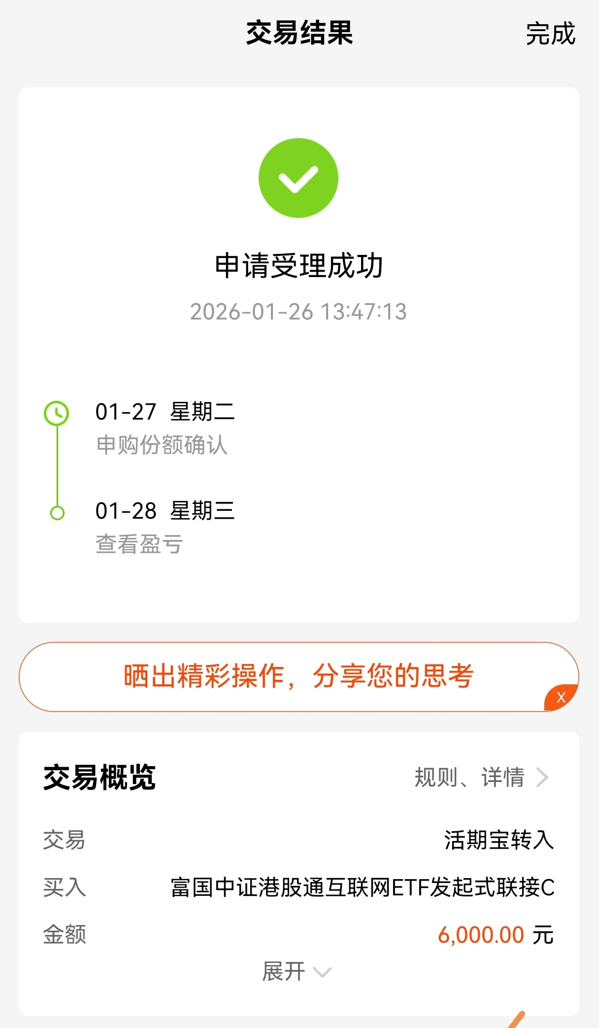 把握好当下的行情,互联网行业监管已从“规范调整”进入“稳态增长”阶段,合规成本大幅降低,龙头企业经营环境持续优化。同时,“全国网上年货节”等消费刺激政策落地,电商、本地生活等传统业务需求回暖,走势还是值得期待,而且港股位置其实不高,上涨空间是有的,富国国中证港股通互联网ETF联接C可以布局起来。